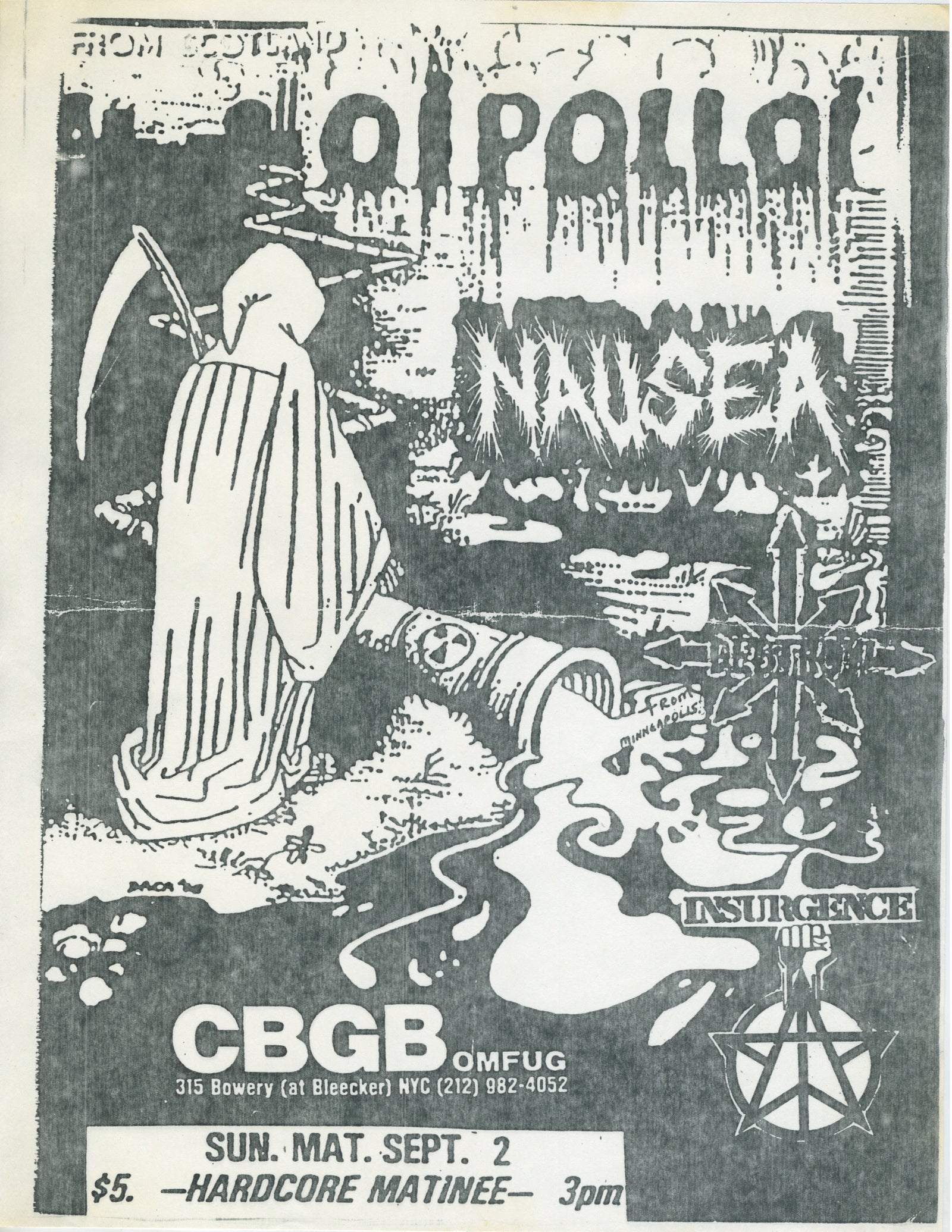 Sold OutVintage Oi Polloi Nausea Destroy & Insurgence "CBGB" Matinee Flyer