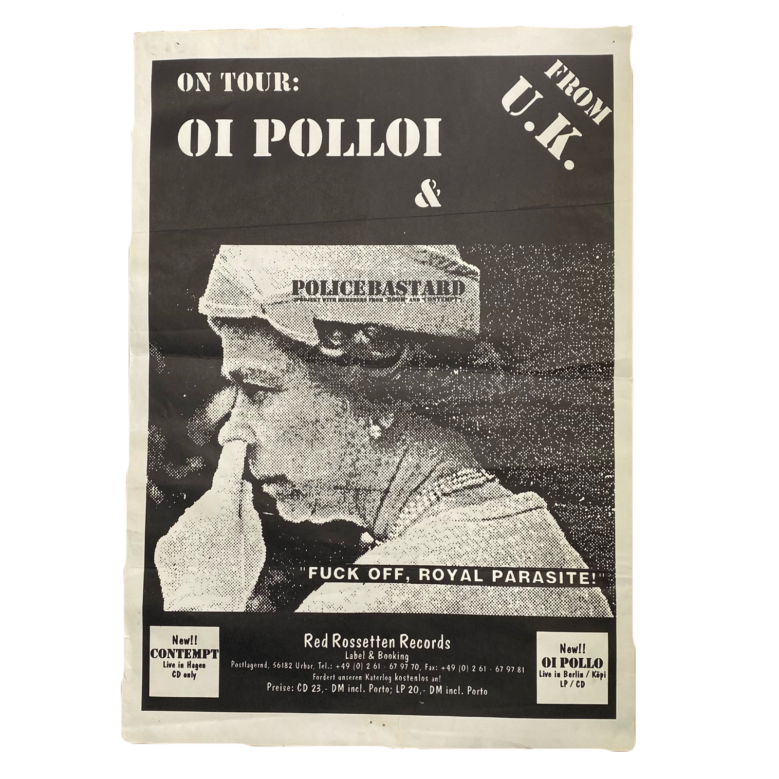 $99.99 USDVintage Oi Polloi Police Bastard "On Tour" Red Rossetten Records Poster