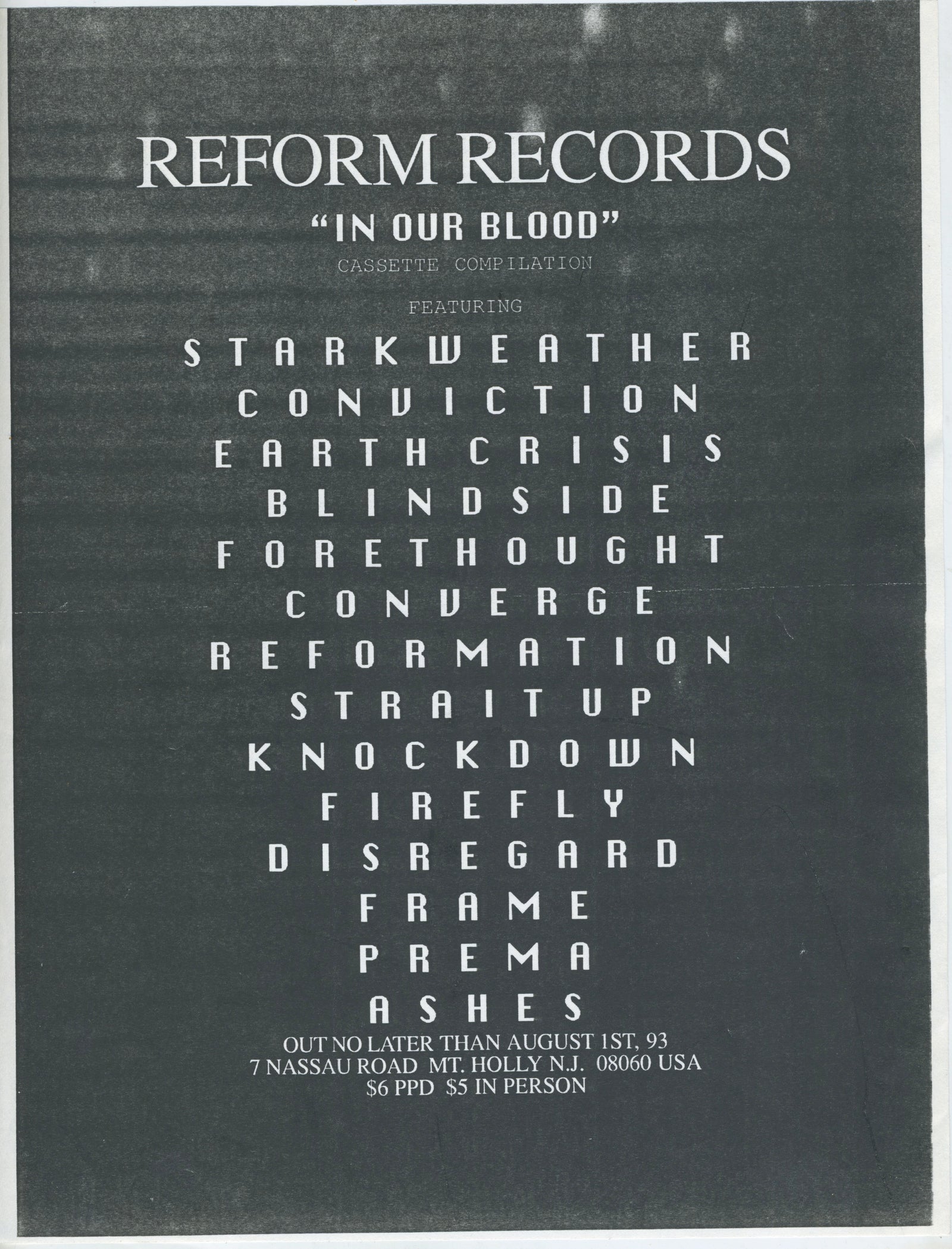 Sold OutVintage Reform Records "In Our Blood" Promotional Flyer