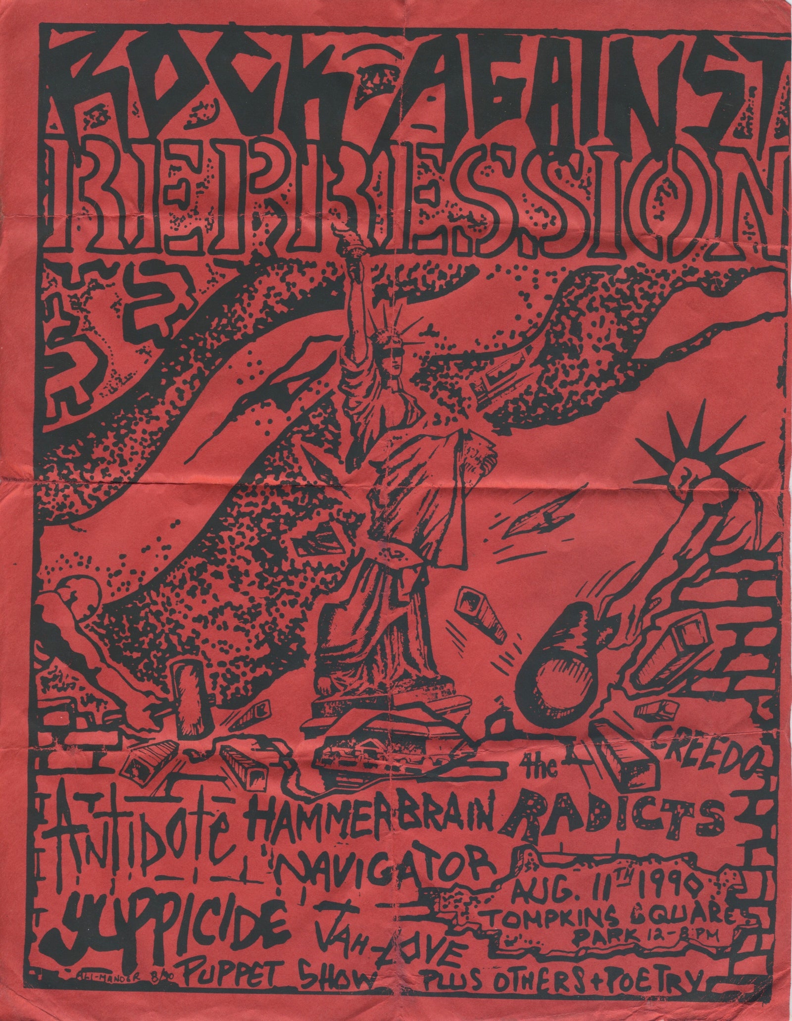 Sold OutVintage Rock Against Repression Antidote The Radicts "Tompkins Square Park" NYC '90 Show Flyer