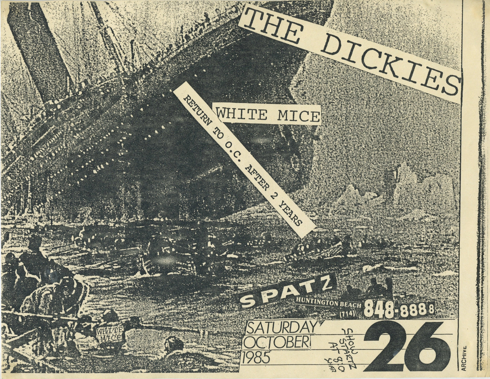 Sold OutVintage The Dickies & White Mice "Spatz" Huntington Beach OC Show Flyer
