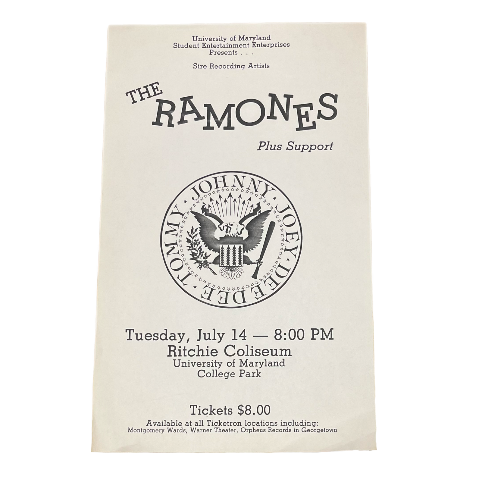 $89.99 USDVintage The Ramones "University Of Maryland" 1981 Ritchie Coliseum Flyer