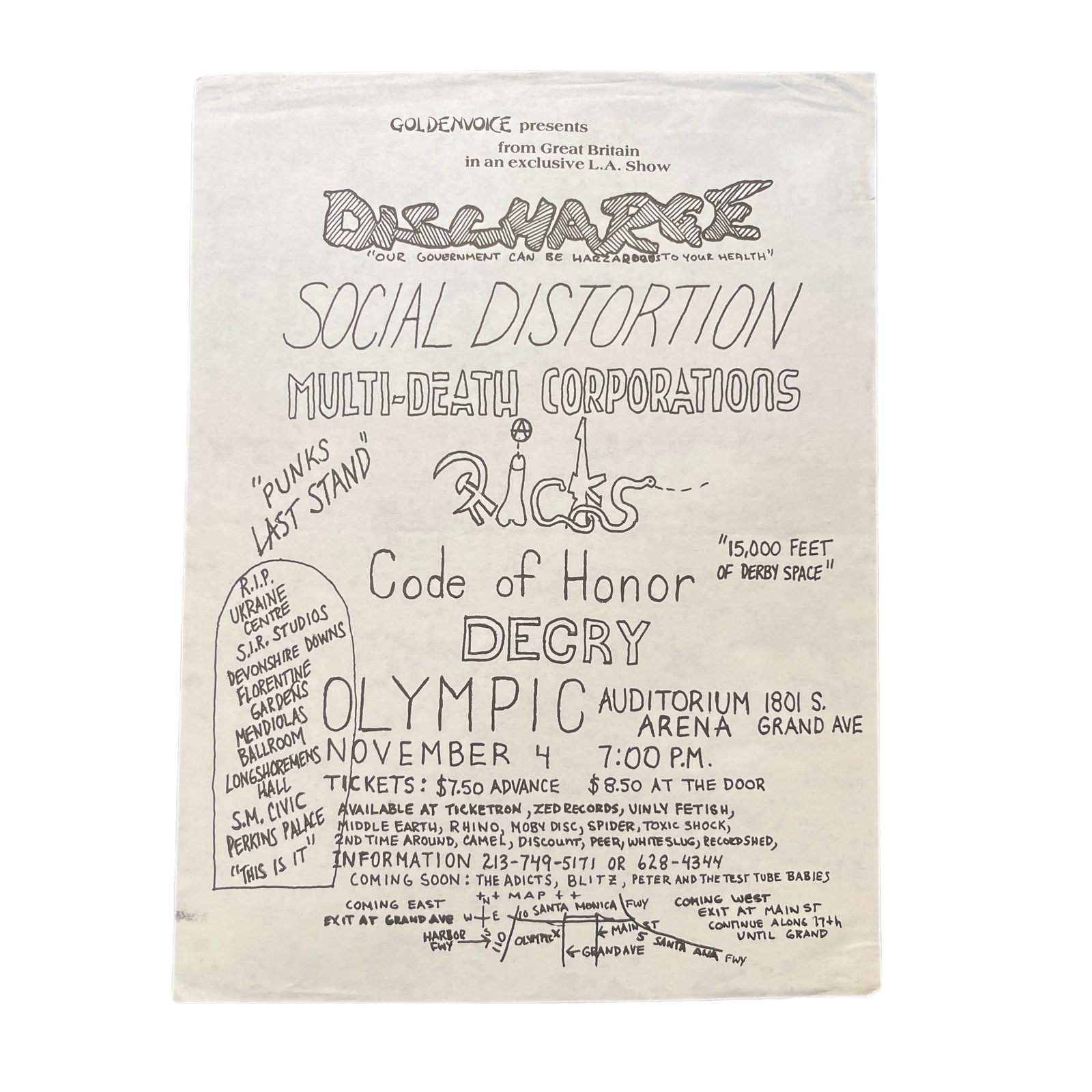 Sold OutVintage Discharge Social Distortion "Goldenvoice Presents" The Dicks MDC Olympic Auditorium Los Angeles Flyer