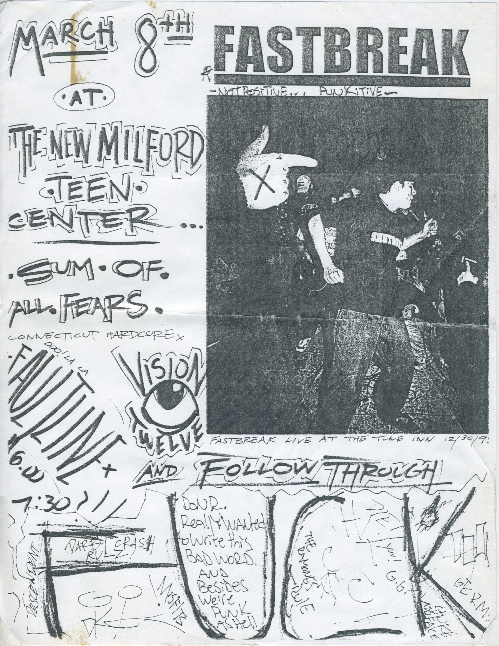 Sold OutVintage Fastbreak Sum Of All Fears Faultline Vision Twelve Follow Through "The New Milford Teen Center" CTHC Show Flyer