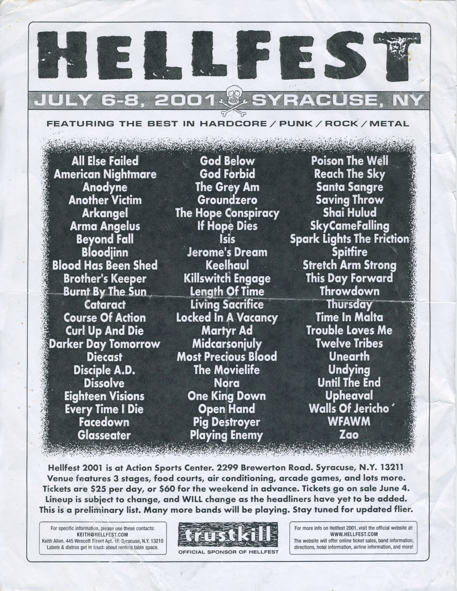 Sold OutVintage Hellfest 2001 "Syracuse, NY" Fest Flyer
