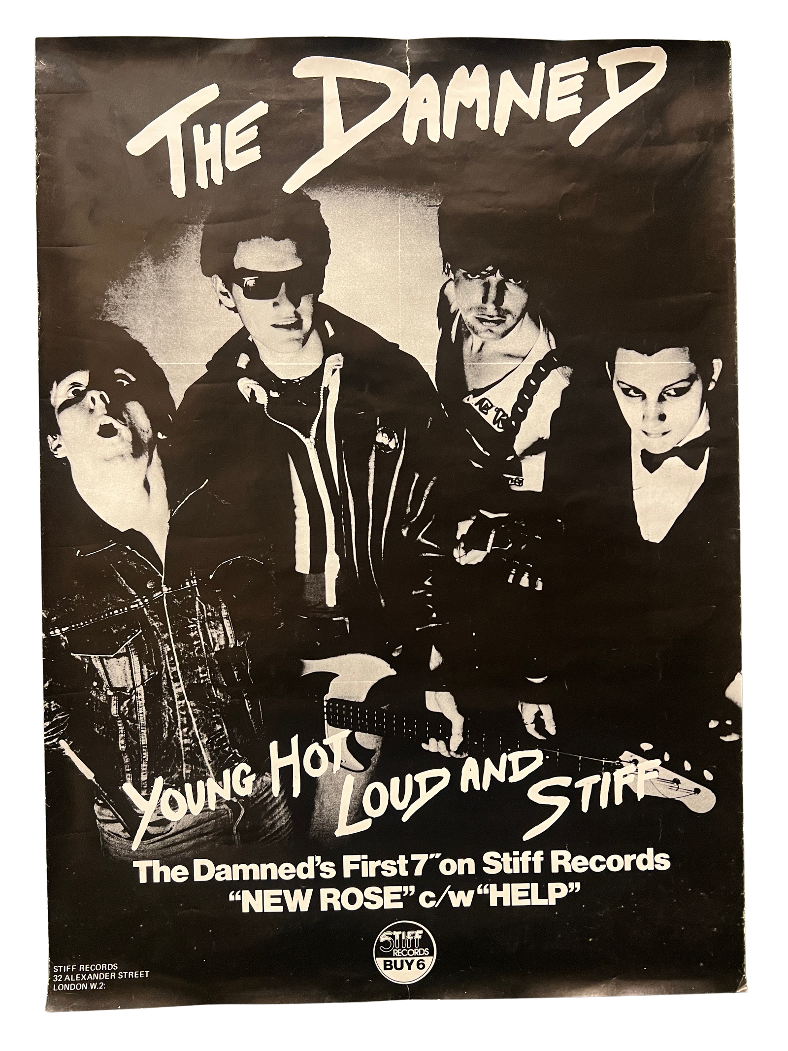 Sold OutVintage The Damned "New Rose b/w Help" Poster