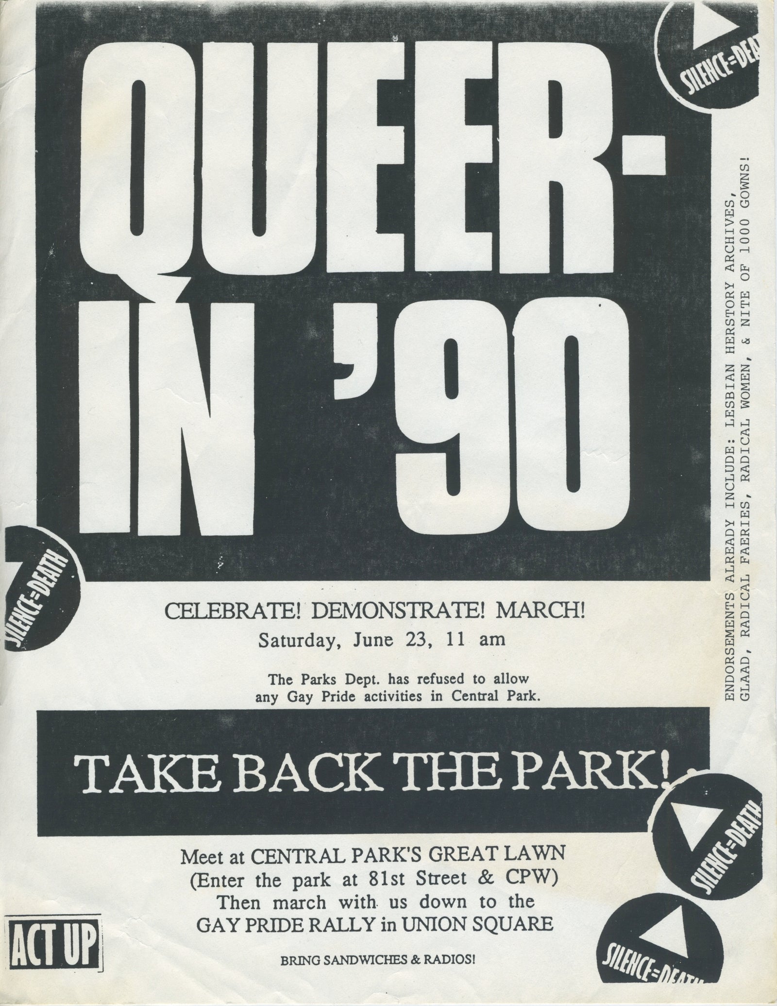 Sold OutVintage Queer in '90 "NYC Central Park" Gay Pride Rally Flyer