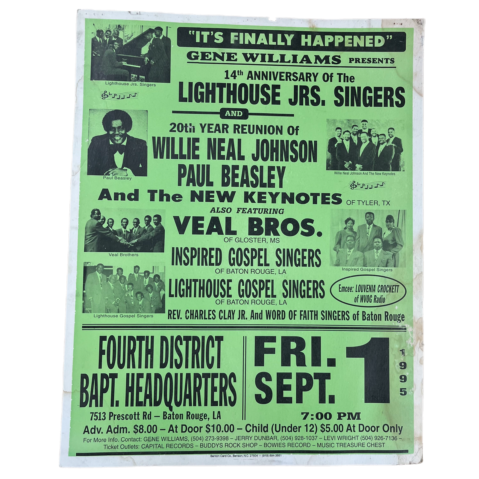 Sold OutVintage Gene Williams Presents "Benton Card Co" Willie Neal Johnson Paul Beasley And The Keynotes Baton Rouge Show Poster