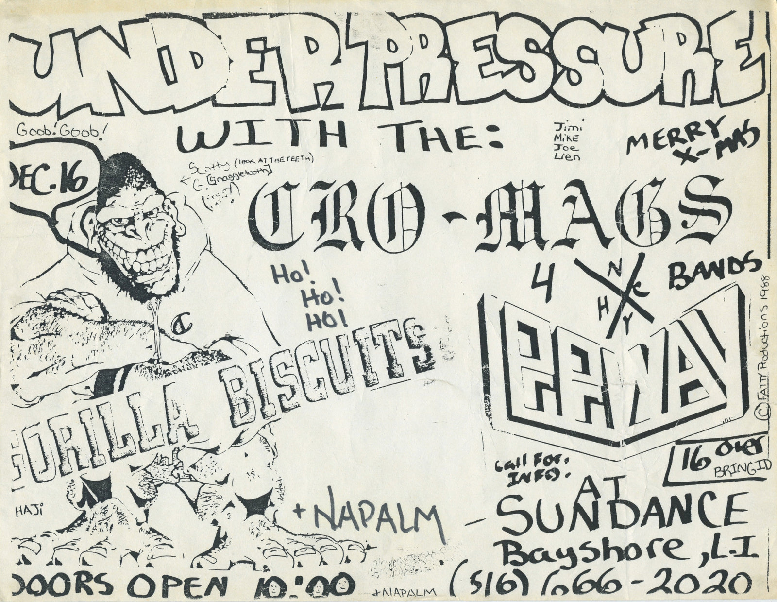 Sold OutVintage Under Pressure Cro-Mags Gorilla Biscuits Leeway "NYHC" Long Island Show Flyer