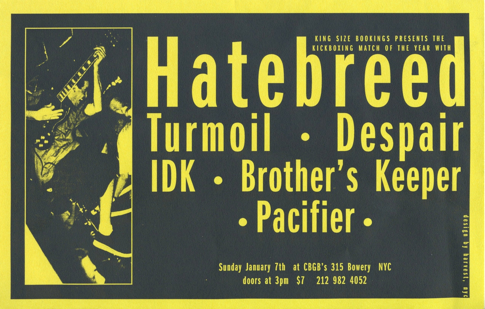 Sold OutVintage Hatebreed Turmoil Despair Brother's Keeper "CBGB's" NYC Show Flyer