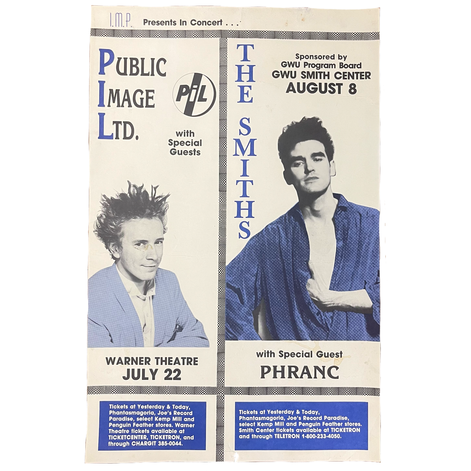 Sold OutVintage Public Image Limited The Smiths "Washington, DC" GWU 1985 Cardstock Poster Flyer