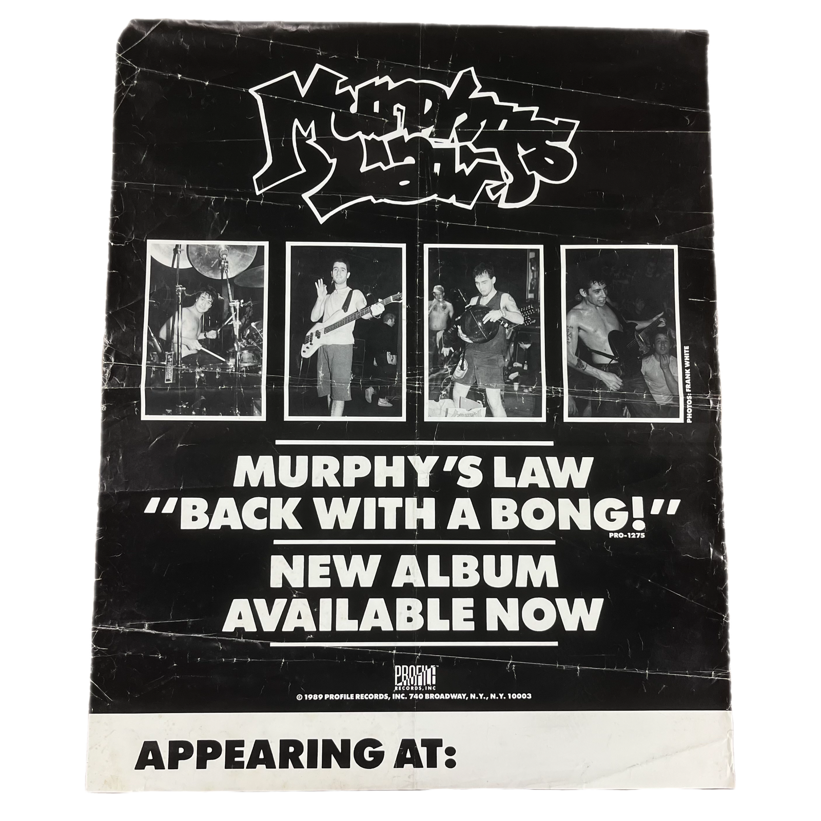 Sold OutVintage Murphy's Law "Back With A Bong!" Profile Records Promotional Poster