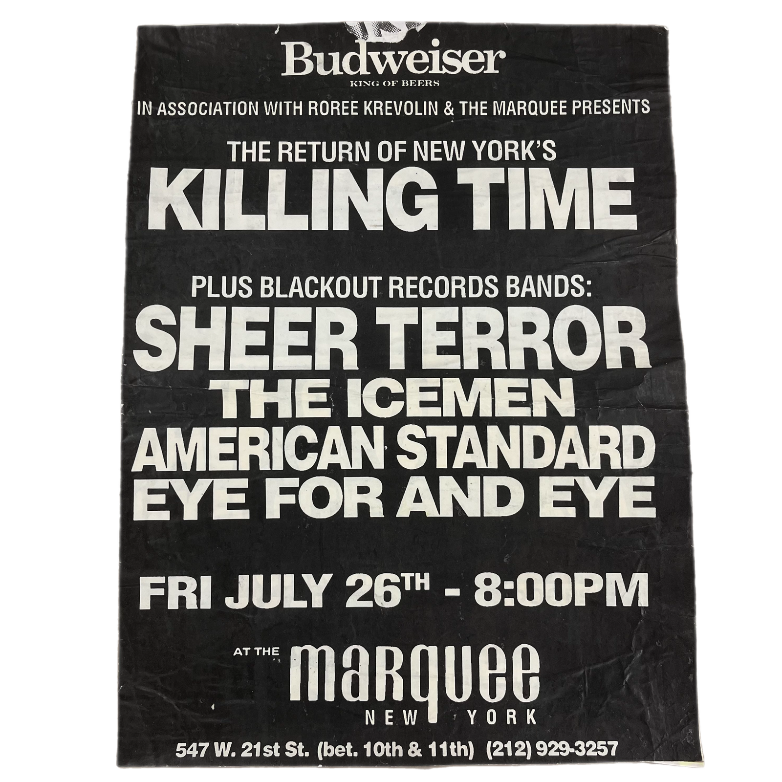 Sold OutVintage The Marquee New York "Killing Time Sheer Terror The Icemen" NYHC Poster