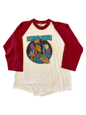 Donkey Kong raglan shirt dating to 1981, the year the original arcade game was released. A piece of Nintendo history.