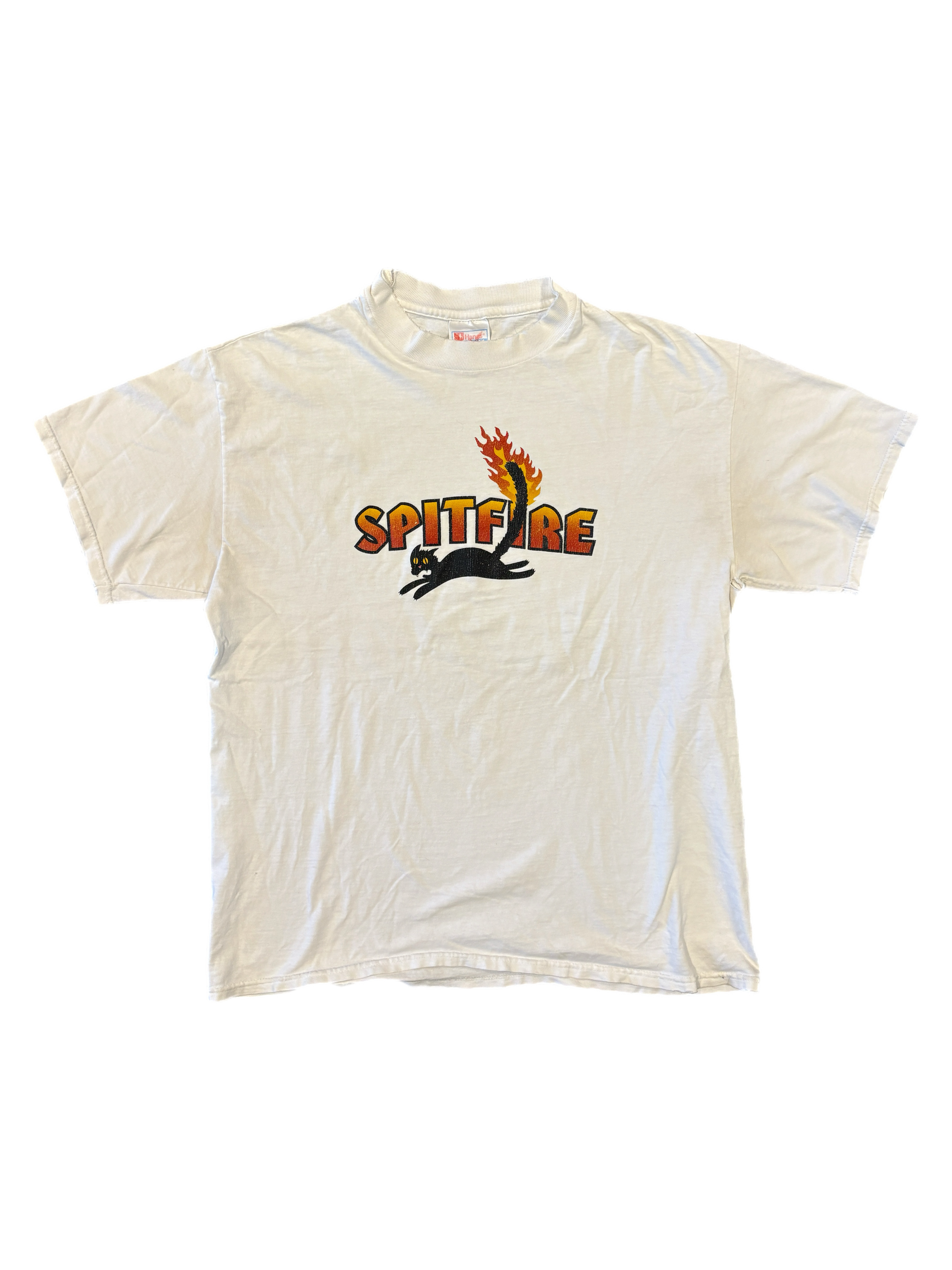 90s Spitfire Wheels shirt with a rare graphic. In great condition with some wear at the collar.