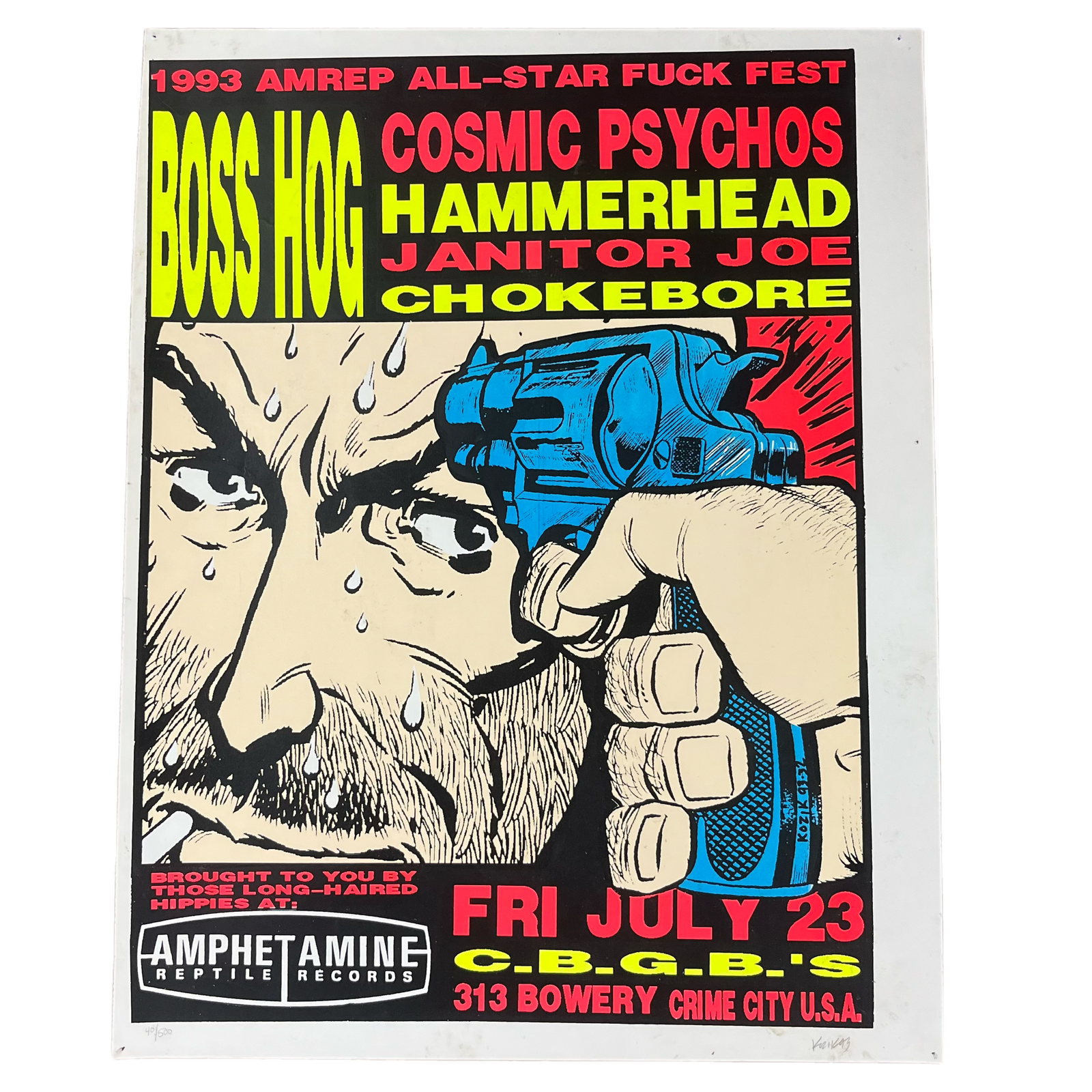 $99.99 USDVintage Amphetamine Reptile Records All-Star Fuck Fest CBGB's "Boss Hog Cosmic Psychos" Frank Kozik Signed and Numbered #40/500 Poster