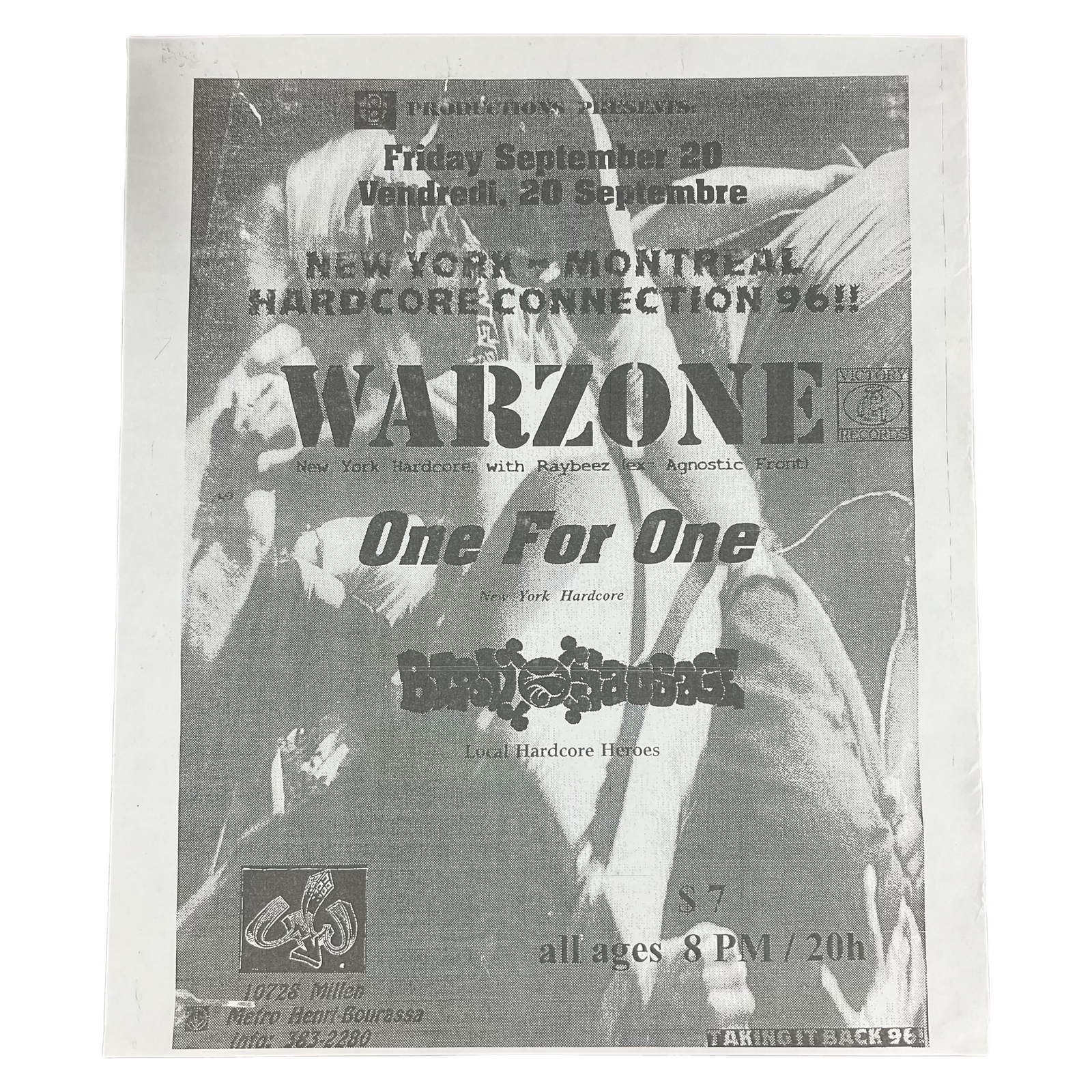 $49.99 USDVintage Warzone One For One Blood Sausage "NYHC Montreal" Hardcore Connection Poster
