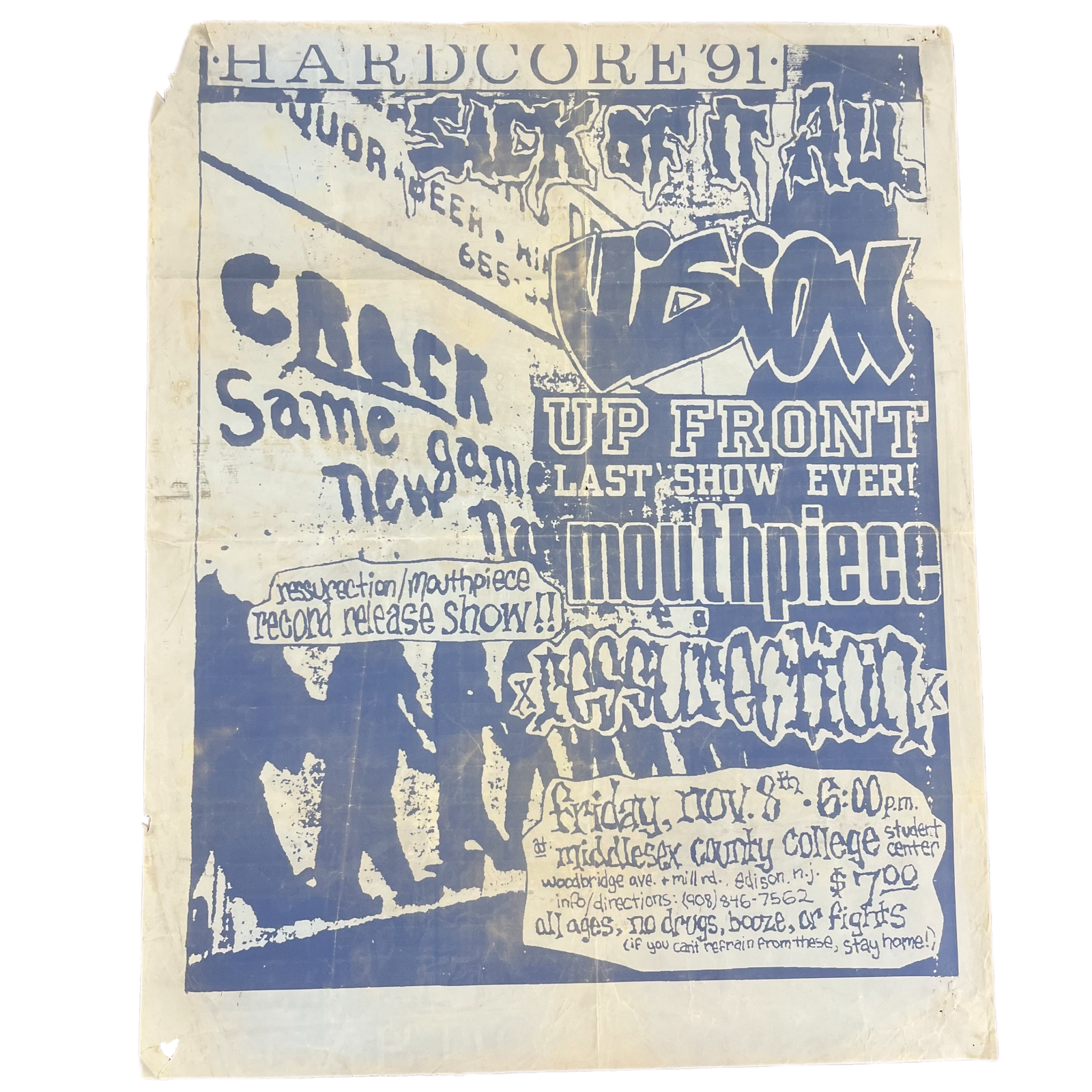 $49.99 USDVintage Sick Of It All Up Front Last Show "Mouthpiece Record Release" Show Poster