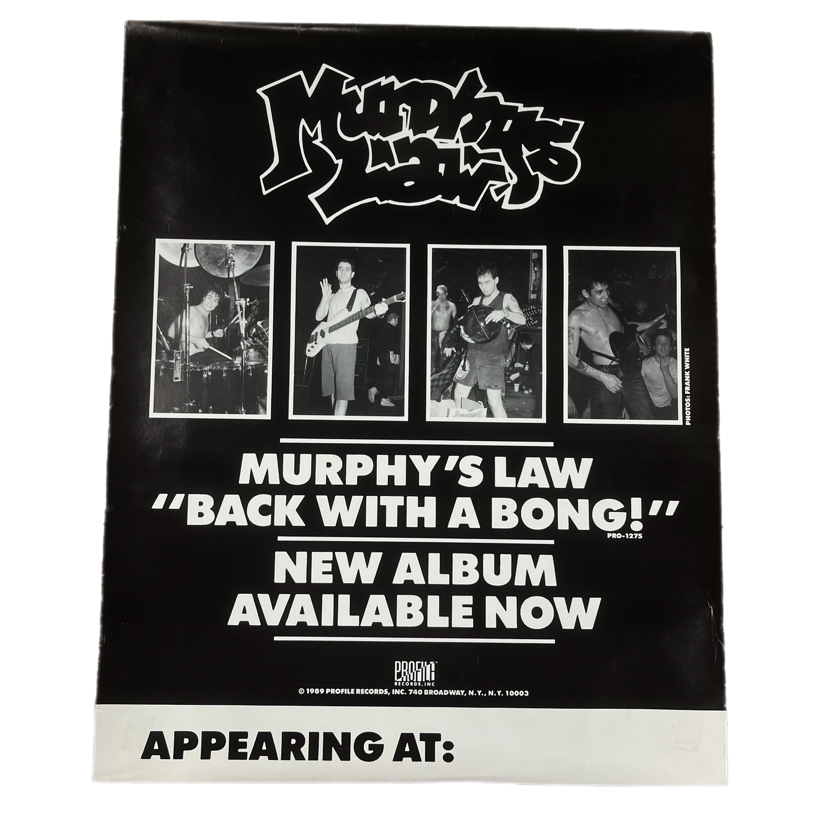 $44.99 USDVintage Murphy's Law "Back With A Bong!" Profile Records Promotional Poster