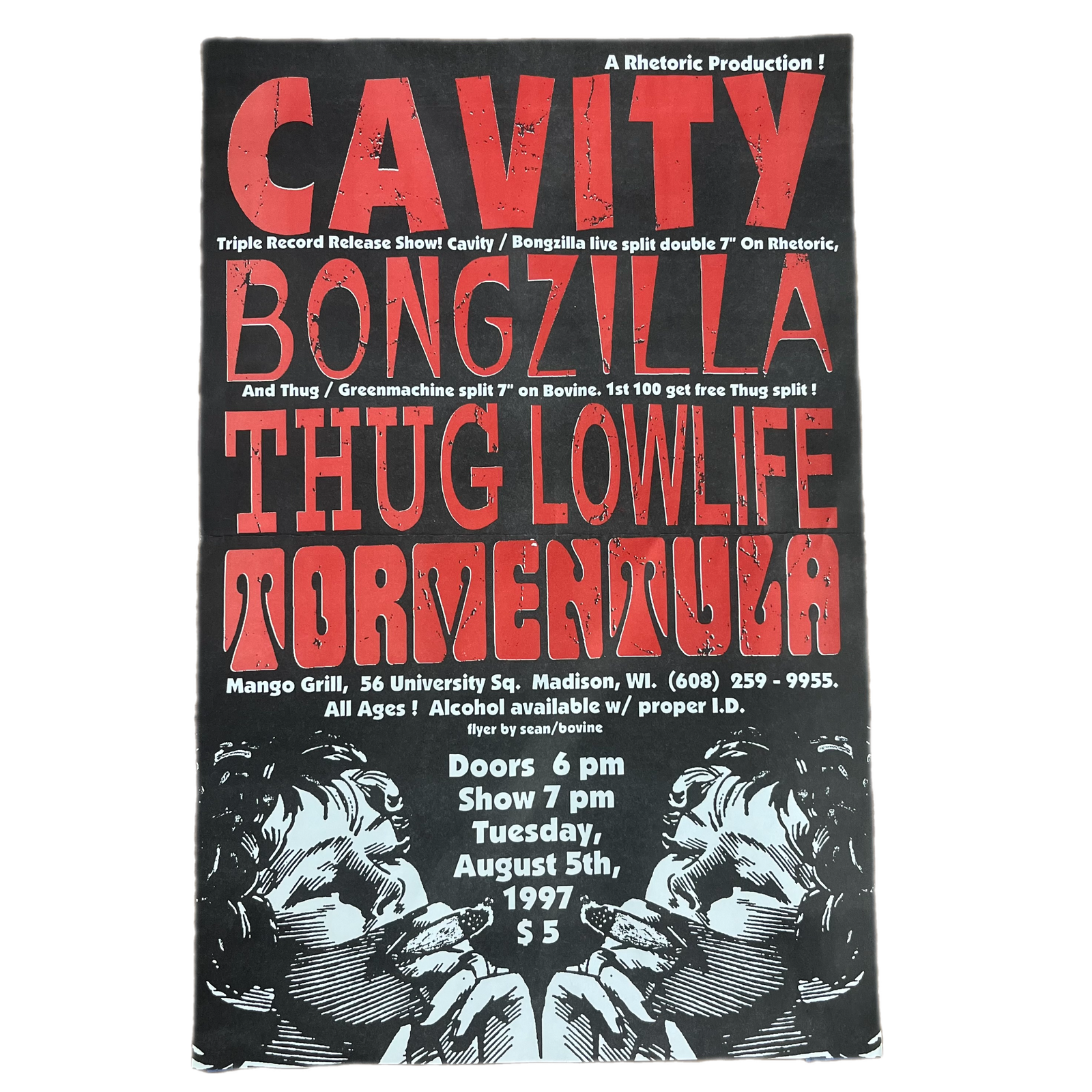 $49.99 USDVintage Cavity "Bongzilla Thug Lowlife Tormentula" Triple Record Release Show Flyer
