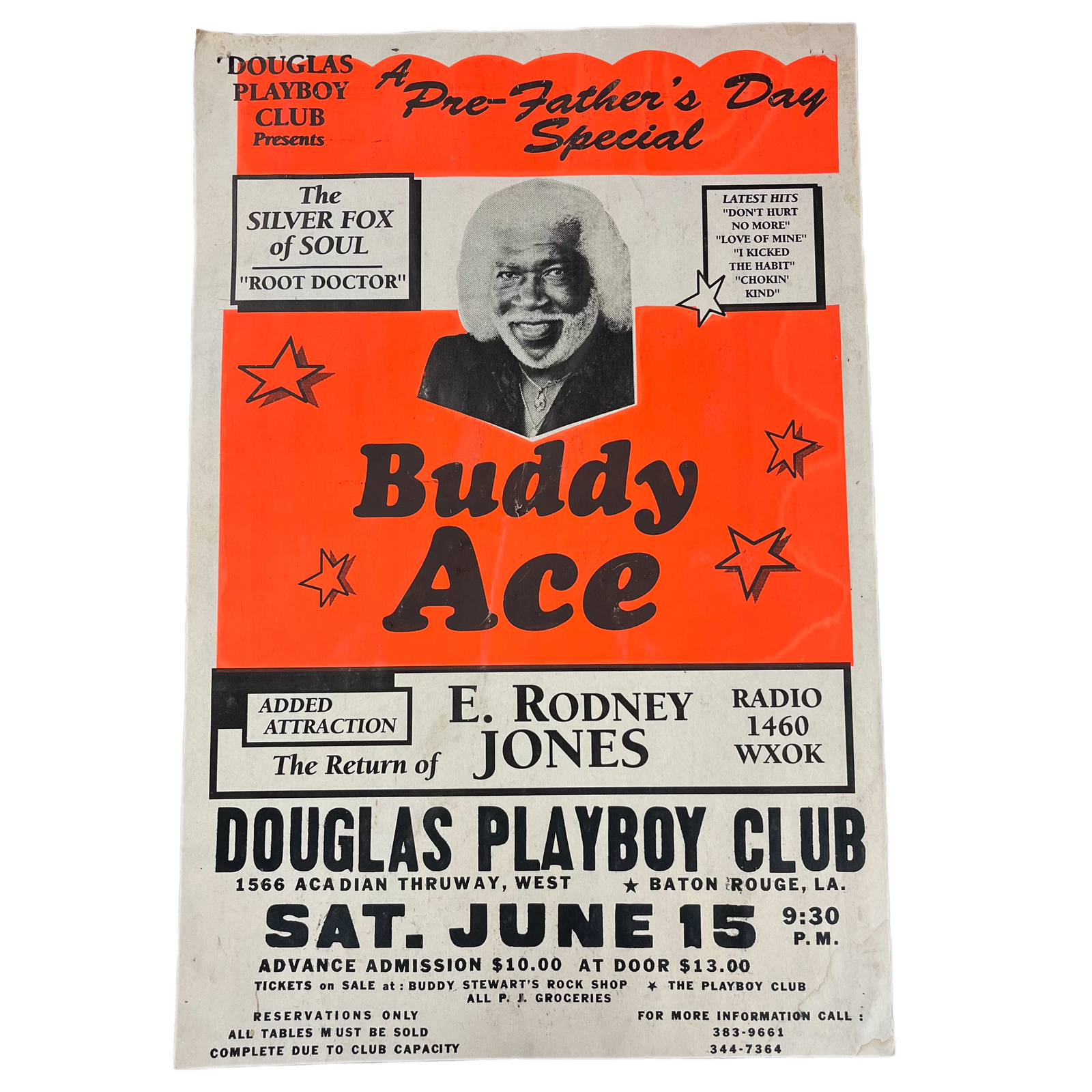 $74.99 USDVintage Douglas Playboy Club Presents Buddy Ace "The Silver Fox Of Soul" E. Rodney Jones Baton Rouge Show Poster