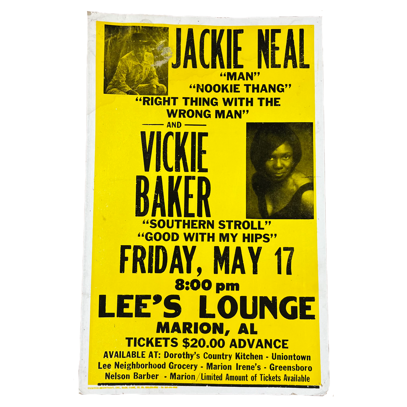 $49.99 USDVintage Sha-La Production Presents "Tribune Showprint Inc" Willie Clayton Jackie Neal Vince Hutchinson Show Poster