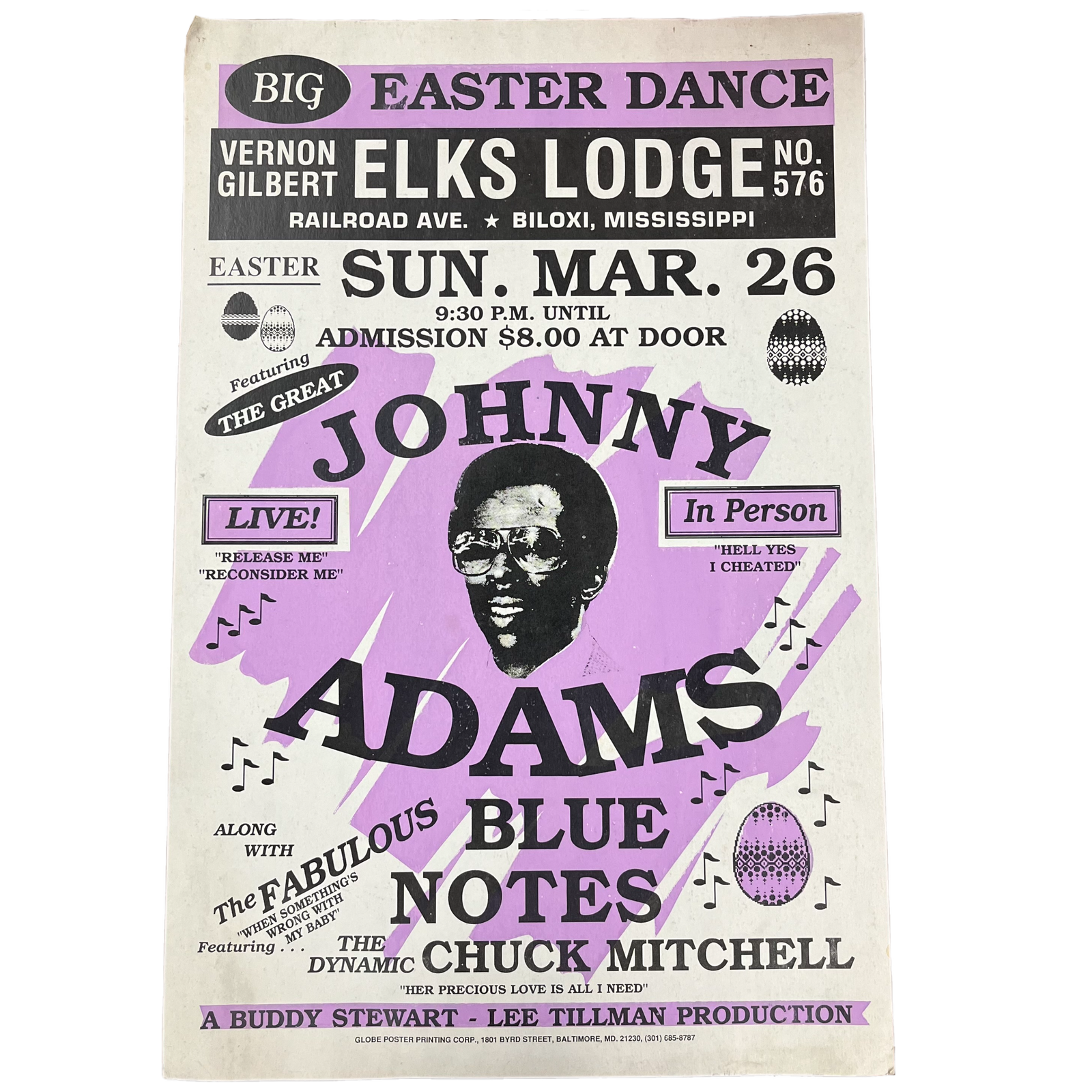 $49.99 USDVintage Buddy Stewart Lee Tillman Production Big Easter Dance Johnny Adams "Globe Poster Printing Corp" Show Poster