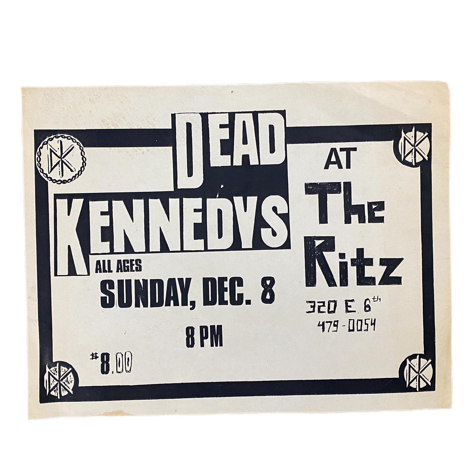 $59.99 USDVintage Dead Kennedys "The Ritz Sunday December 8" Flyer