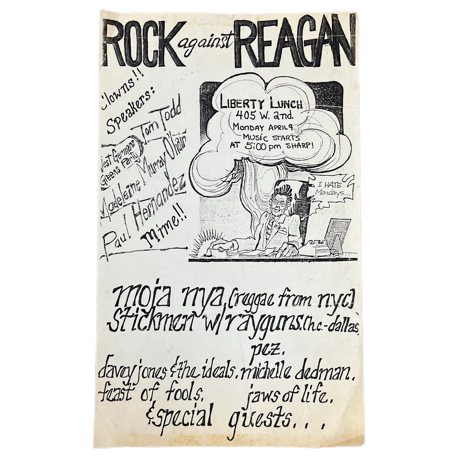 $39.99 USDVintage Rock Against Reagan "Mora Nya" Liberty Lunch Texas Flyer