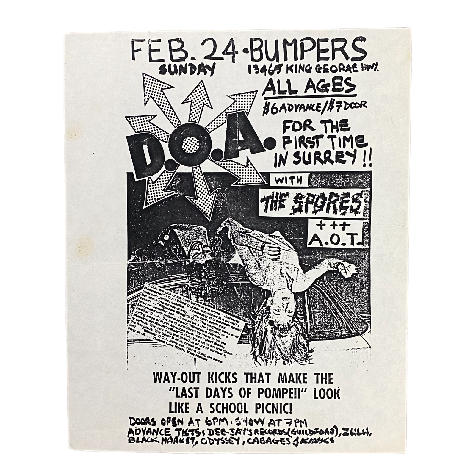 $149.99 USDVintage D.O.A. "For The First Time In Surrey!!" Bumpers Flyer