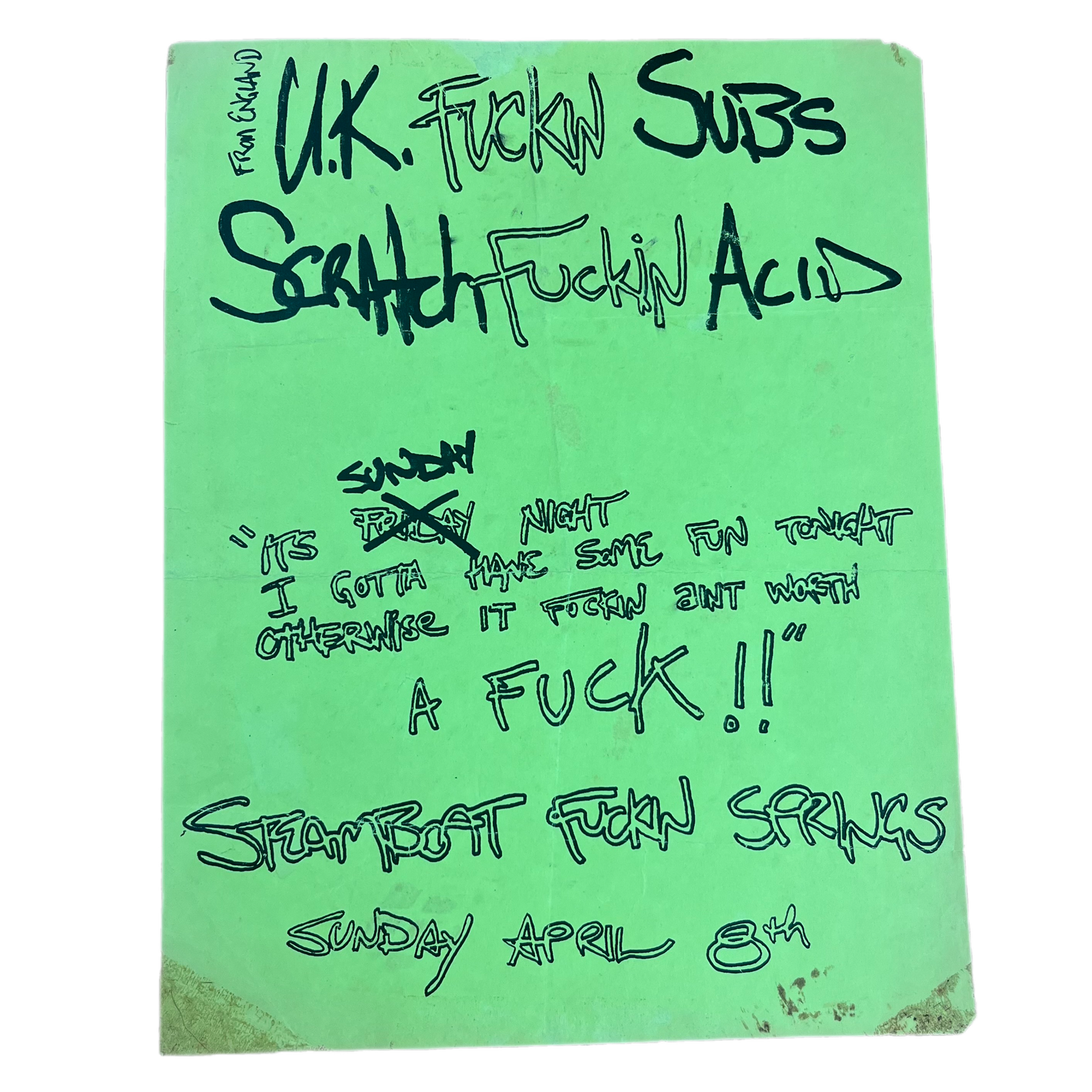 $29.99 USDVintage UK Subs Scratch Acid "Steamboat Springs" Show Flyer