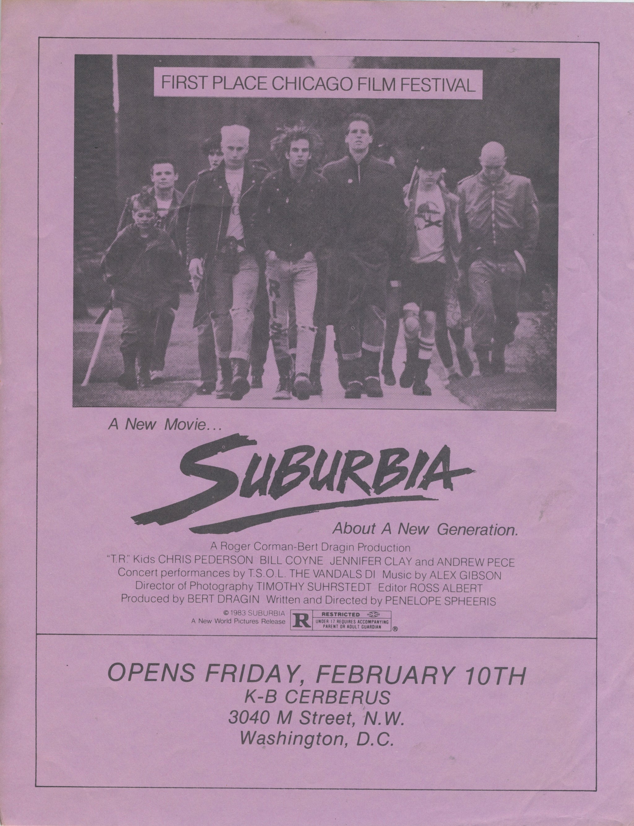 Original flyer for a showing of Suburbia in Georgetown.