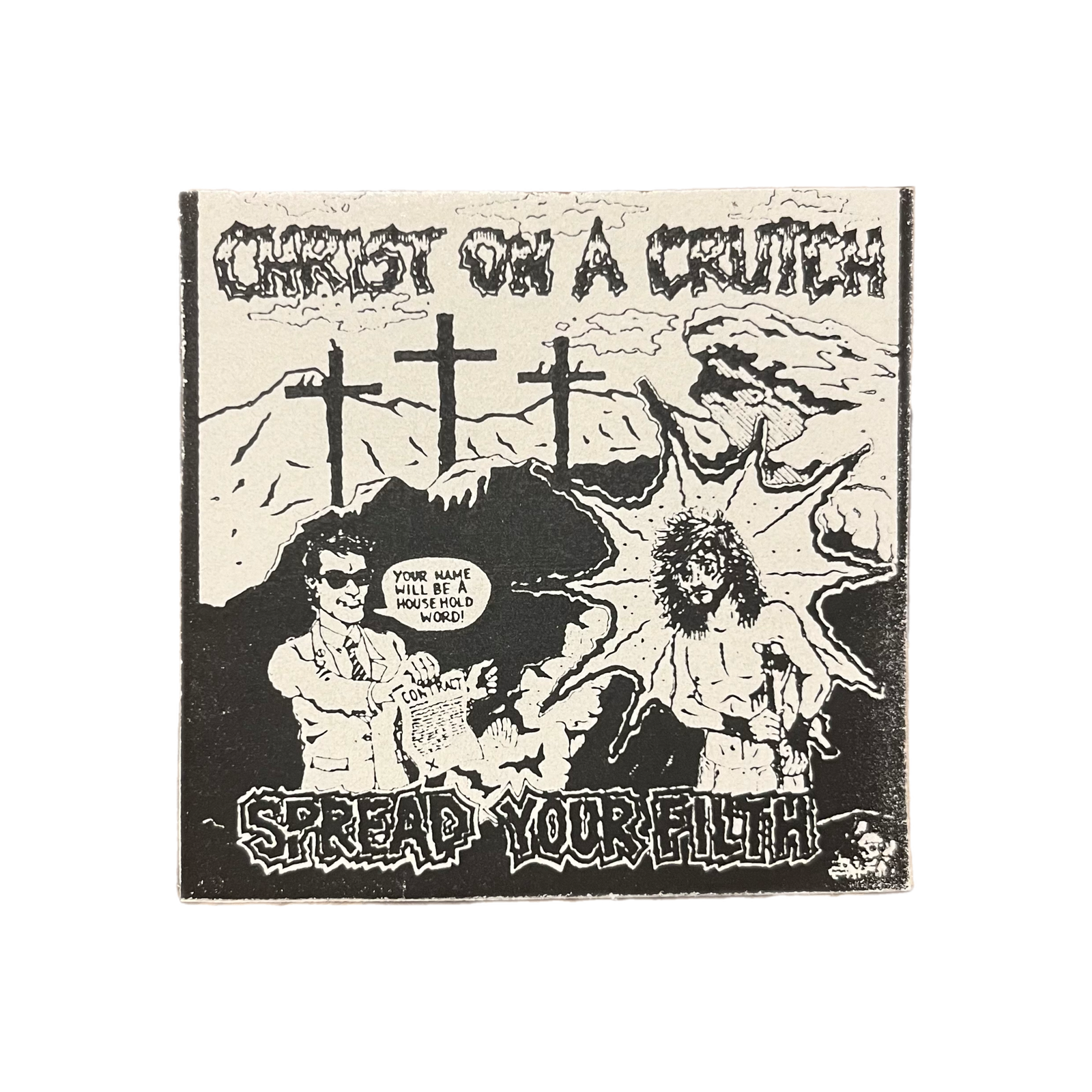 $44.99 USDVintage Christ On A Crutch "Spread Your Filth" Mactac Sticker