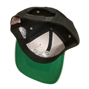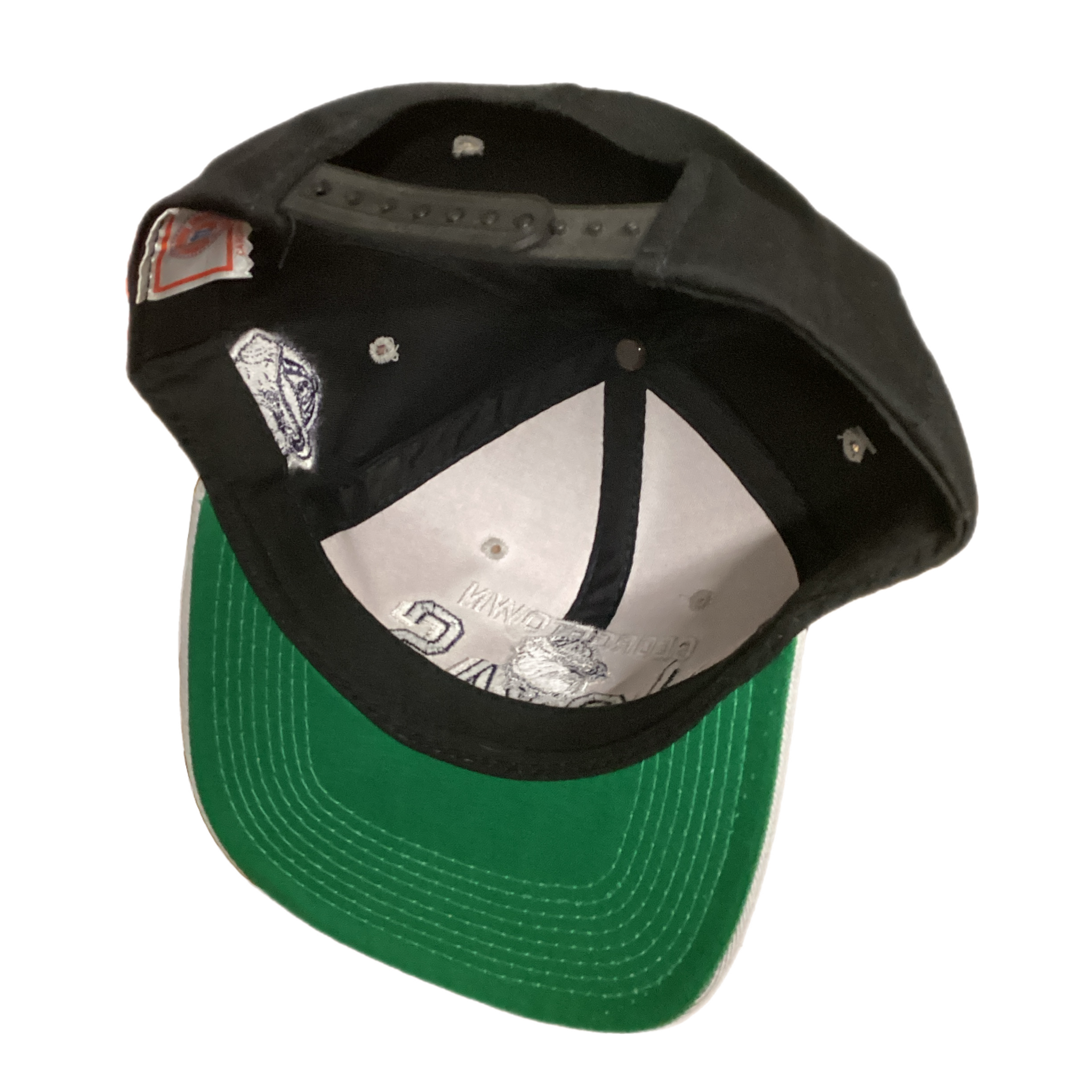 Original '90s snapback with fading on the crown from prolonged storage.
