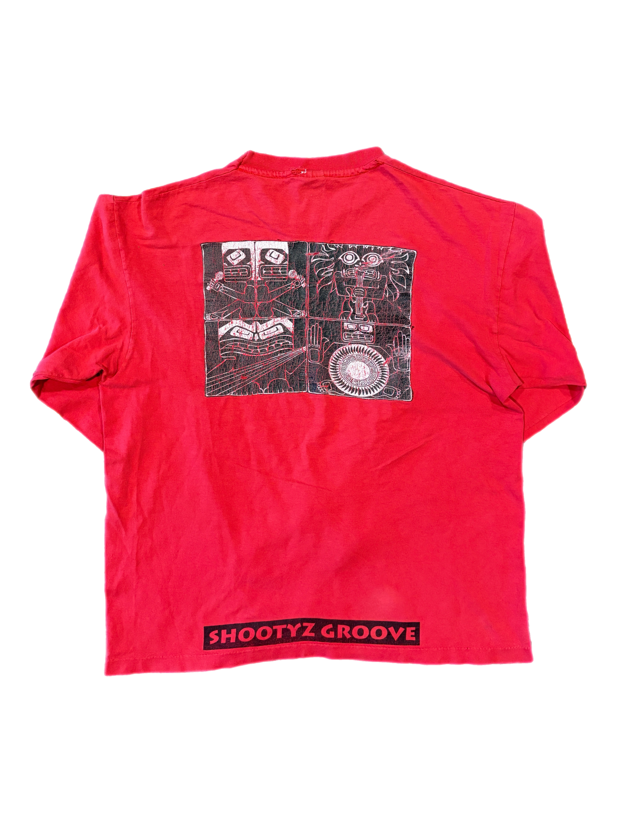 Shootyz Groove are a rap metal band from The Bronx, New York. This longsleeve features the art from their first album Jammin In Vicious Environments on the back. Some cracking and fading on the print, and one mark on the left sleeve.